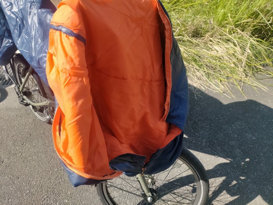 日中はまだまだ暑いが夜はかなり涼しい。 シュラフも天日干し。 顔を出すところのほつれを縫った。