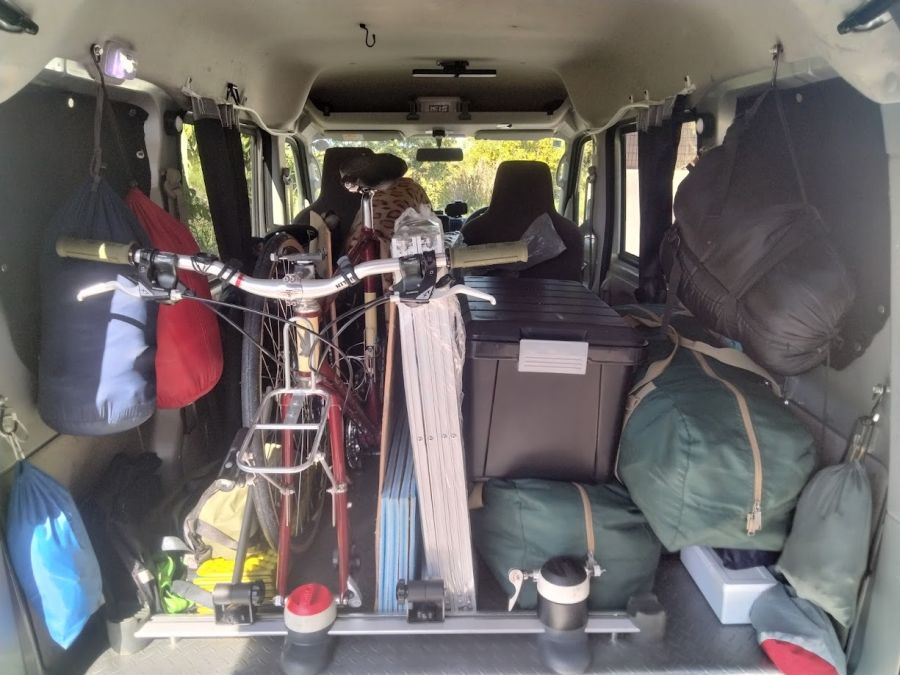 明日積めばええんやが積載確認を。 三連休のための自転車もつんだままでの積載。