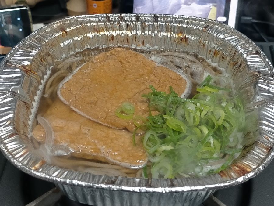 昼飯問題。 通勤で寄れるスーパーの弁当。 いろいろ食べたが続くと飽きてくる。 ジャンクフードはほんまにたまに。 スーパーで買った冷食。 これもなかなか種類が少ないのと値段もそこそこする。 今はこのアルミ鍋シリーズ。 160円くらいで食べれるが腹は満たされない。 今日はそば玉38円。 出汁は作ってきたやつ。 ねぎは切ってあるやつ。 きつねは4枚入りで138円くらい。 これにおにぎりを買った。 おにぎりが美味かった。