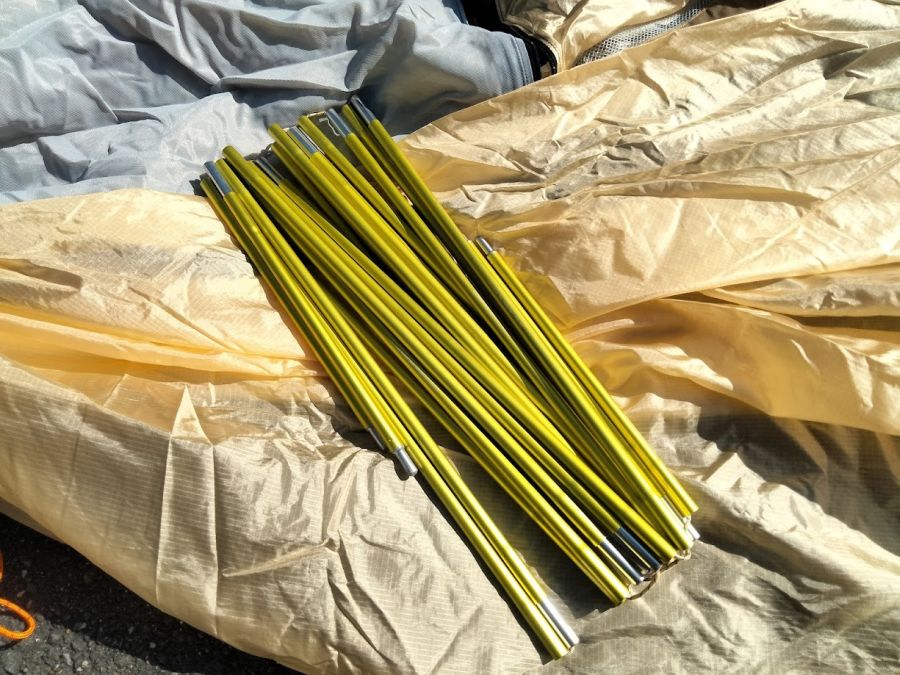 今日は天気もいいのでテント持ってきて 天日干しします。 ポールのゴム ショックコードが伸びとる^^;;; Colemanのテントも伸びてたしな。。 とりあえず短くして使えるようにはした。 明日届くので交換はするが。