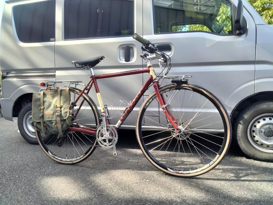 足がガクガク小鹿状態。 左膝がちょっと炎症で屈伸が。。。。 今日は車の中に自転車を積載。 Singular Pregrine タイヤ交換してまだ乗ってへんな。