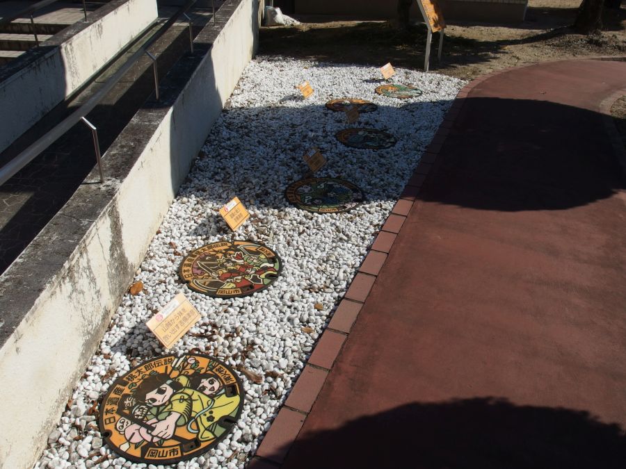次の目的地に到着。 岡山市水道記念館。 こfこはマンホールです。 顔出し看板 マンホールそんなんを見に行く旅なので^^