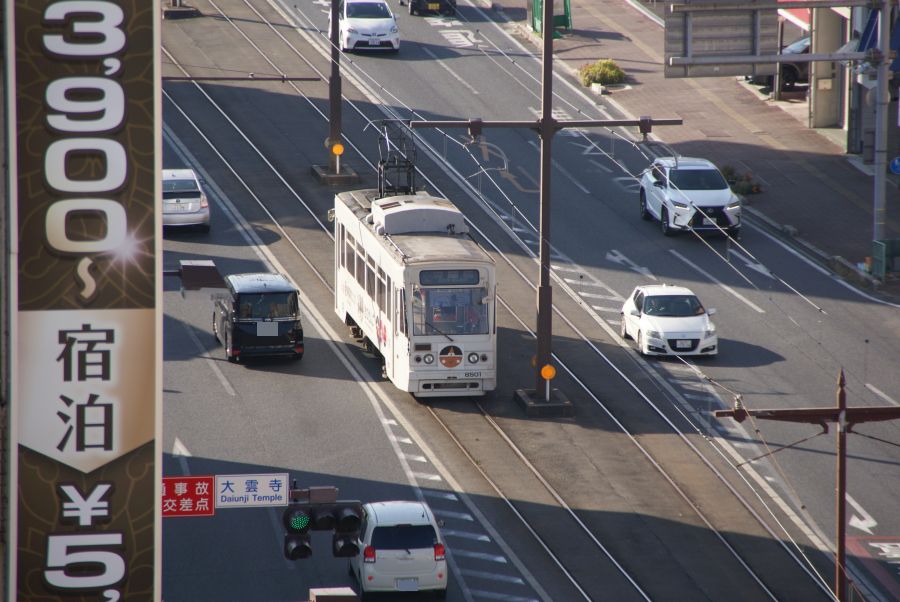 運行スケジュール見てみると 9:20 岡山駅前発→清輝橋→岡山駅前→東山着 10:26 岡山駅から出発してこのホテル前を通過するので 時間的にチェックアウトまでに通る。 カメラセットして動画セットして待つ。