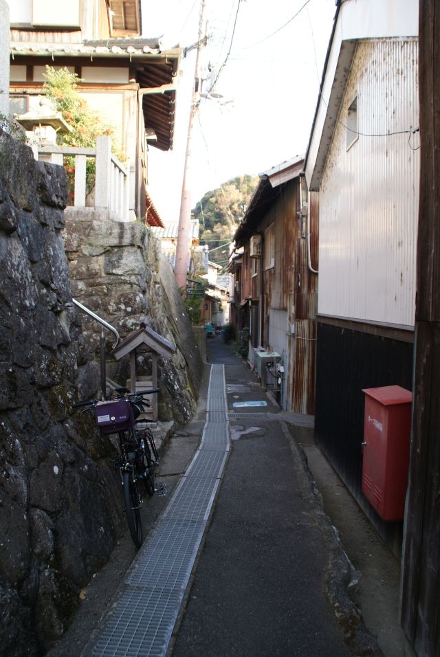 すごい路地。 一応ワイヤー錠持ってきたが一度も施錠せんかったな。 ここの神社は御朱印が自分でスタンプで押すタイプ。