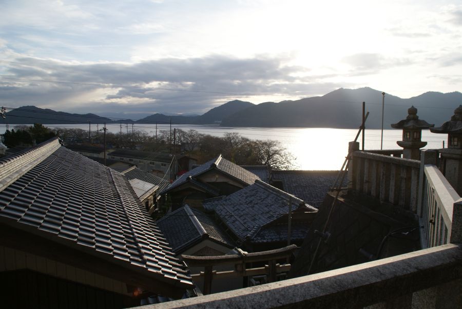神社に戻って御朱印スタンプ押して 見晴らしのいい上まで階段上ります。