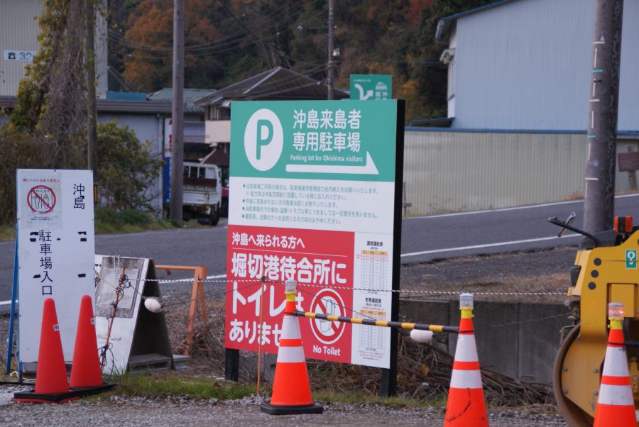 6時34分到着。 堀切港から行くんやがしっかりと駐車場がある。 2018年の時は無料やったな。 今は300円。 駐車場からちょっと船の乗り場まで距離あるので組み立てて乗っていく。