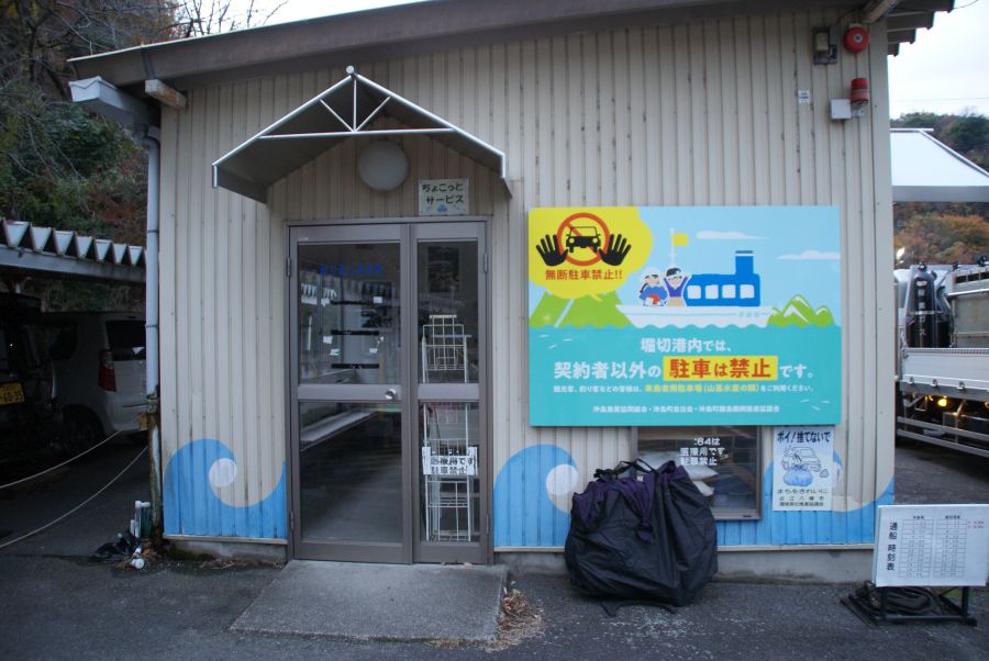 一番。 あとから一人来た。 釣り人も来た。 こいつ待ってる間、歩きタバコ、切符買うの順番抜かし。 しばいたろか。 駐車料金を乗船切符買う機械の上にあるポストに入れるんやが 勝手に切符買っとるし。