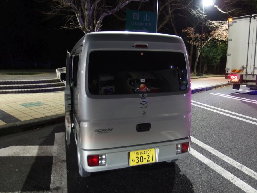 この前のパーキングエリア。 この前と同じ場所!笑 22時半ほどに到着。